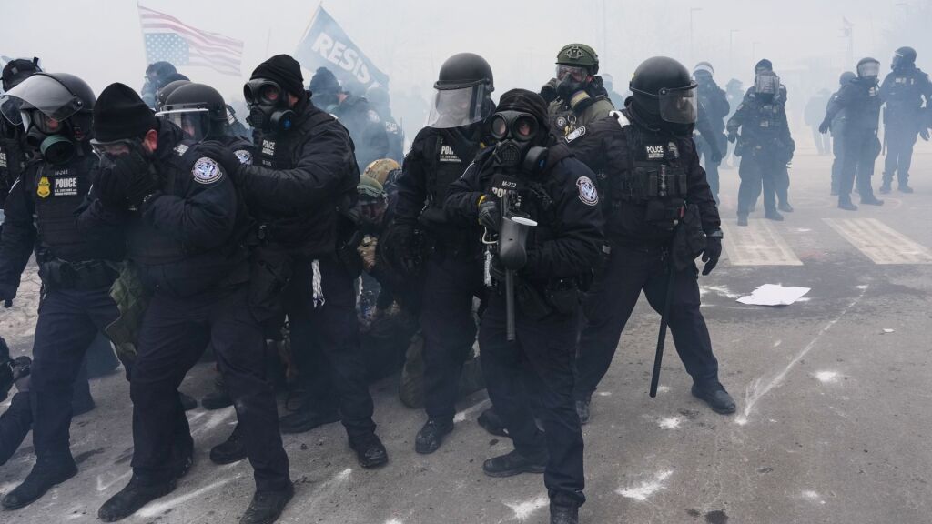 “As you can see, a scene of utter, utter chaos here. People protesting, police pushing back and using these crowd disbursement techniques to do so.”