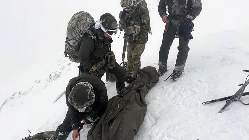 The marines created an improvised stretcher using a bivvy sack, ropes, a mat and a jacket, bringing the climber down the mountain to safety.
